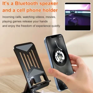 - 5. **Multi-Functional Design**: Combines a phone stand, Bluetooth speaker, and power bank in one compact device.