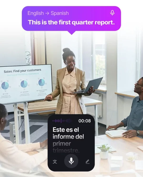 รองรับการแปลเสียงทันทีด้วยปุ่มเดียว และแปลอย่างต่อเนื่องแบบเรียลไทม์เพื่อการสนทนาที่ลื่นไหล