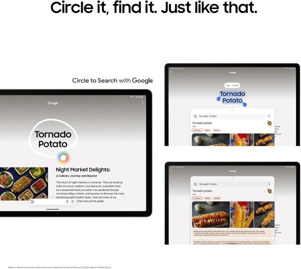 - CIRCLE IT, SEARCH IT, FIND IT. JUST LIKE THAT: Search for anything you see on your Galaxy Tab S9 FE+ Series screen simply by circling it. From discovering where to buy those awesome shoes to getting a recipe based on a dish your friend just posted, find answers fast using Circle to Search with Google.¹